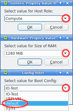 The Host Template filter selects hosts that have a very specific config. On the other hand, the Generic/Hardware Property and Config Set filters allow filtering for just one branch of the overall configuration. They also work when a set is assigned via the Global Host Template or assigned directly to a host. Adding one of these filters opens up a pop-up dialog asking for the set to filter for.