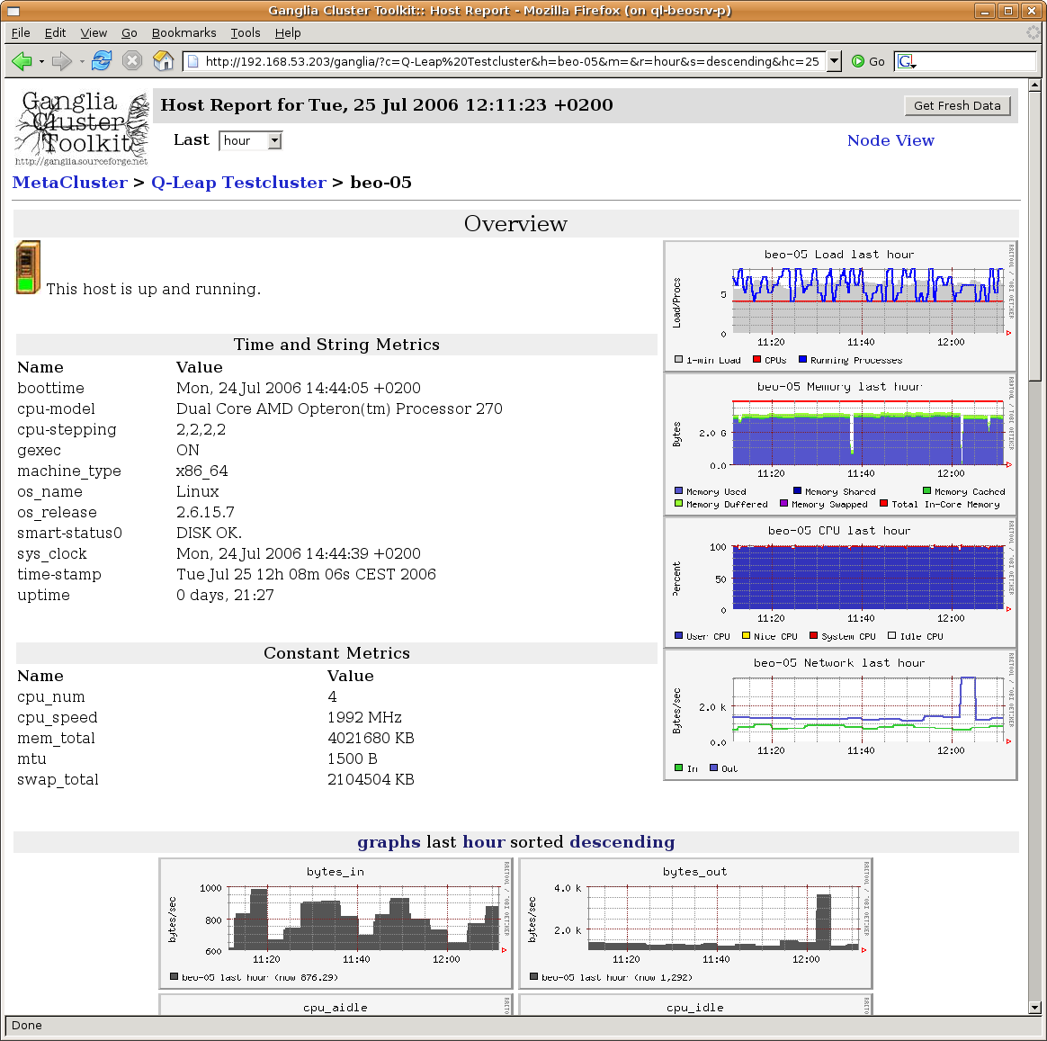 0 root@cl-head ~ #ifconfig ib0ib0 Link encap:UNSPEC HWaddr 80-00-00-48-FE-80-00-00-00-00-00-00-00-00-00-00 inet addr:172.17.7.105 Bcast:172.17.127.255 Mask:255.255.128.0 UP BROADCAST RUNNING MULTICAST MTU:2044 Metric:1 RX packets:388445 errors:0 dropped:0 overruns:0 frame:0 TX packets:34 errors:0 dropped:0 overruns:0 carrier:0 collisions:0 txqueuelen:256 RX bytes:39462502 (39.4 MB) TX bytes:2040 (2.0 KB)