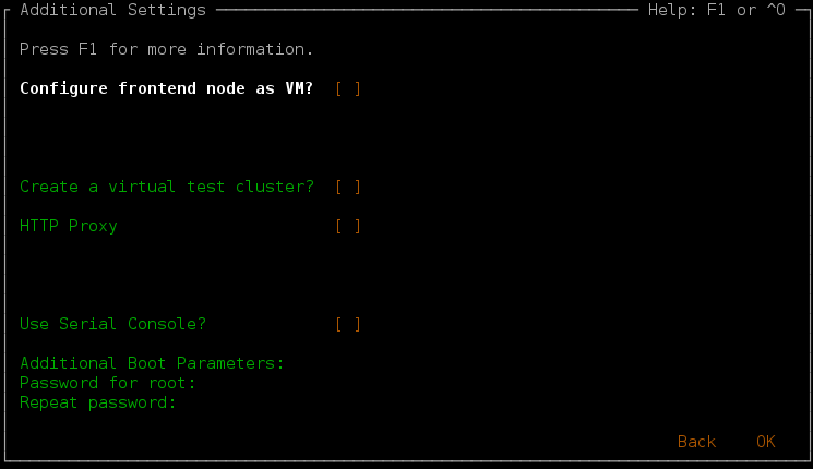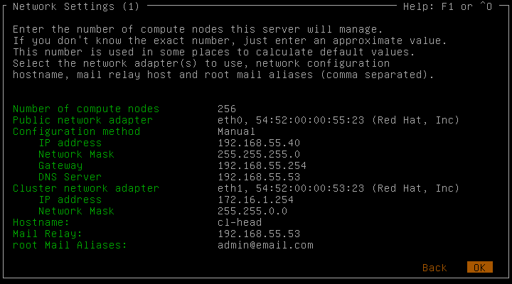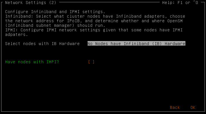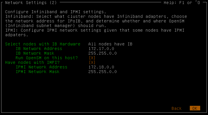 Infiniband (IB) and/or IPMI network parameters, if you have the corresponding hardware in your cluster.
