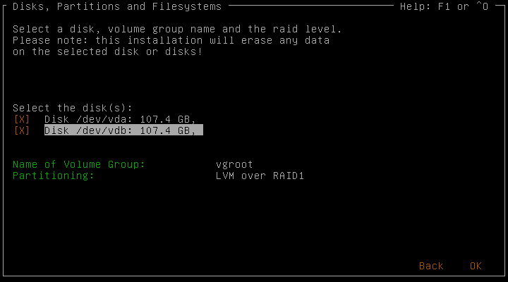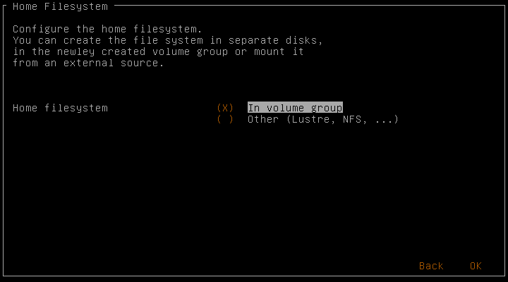 (root, var, tmp, apps) will automatically be created on equally named LVM logical volumes within this volume group.