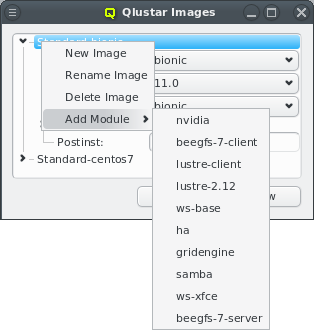 modular OS images. Different nodes may have different hardware or need to provide specific and varying functionality/services. Therefore, to optimize the use of hardware resources and increase stability/security, Qlustar does not come with just one boot image that covers every use-case. Instead, a number of image modules with different software components are provided from which individual custom OS images can be created as needed. A Qlustar OS image just contains what is actually required to accomplish the tasks of a node, nothing more. See below for more details about configuring OS images.