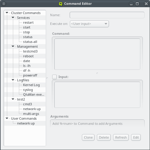 Qlustar Management interface. The QluMan GUI is multi-user as well as multi-cluster capable: Different users are allowed to work simultaneously with the GUI. Changes made by one user are updated and visible in real-time in the windows opened by all the other users. On the other hand, it is possible to manage a virtually unlimited number of clusters within a single instance of the QluMan GUI at the same time. Each cluster is shown in a tab or in a separate main window.