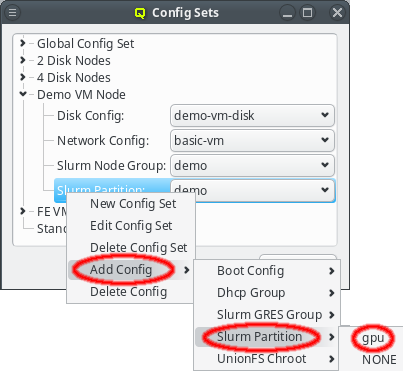 since a host can be member of an arbitrary number of Slurm partitions. They can all be assigned by selecting them via in the context menu of a Config Set or via the Enclosure View context menu of the host(s).