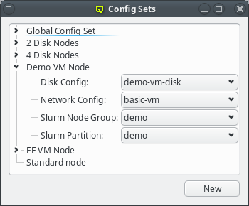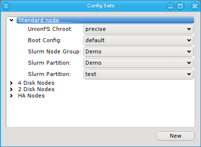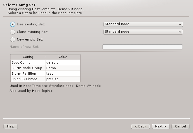 Node/Gres Groups and Partitions by use of the global or a Host Template (through its corresponding Config Set) or by direct assignment, i.e. the standard four levels of configuration. A Config Set may contain at most one Node Group but any number of Gres Groups or Partitions,