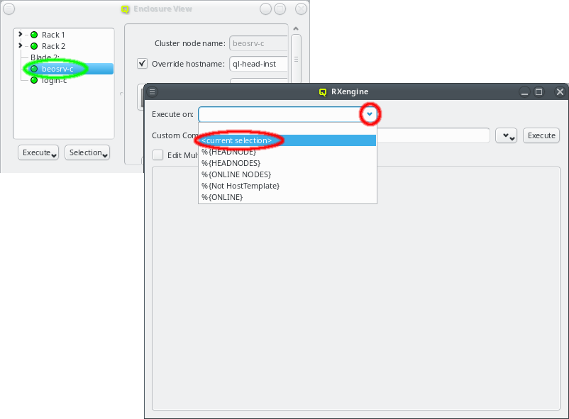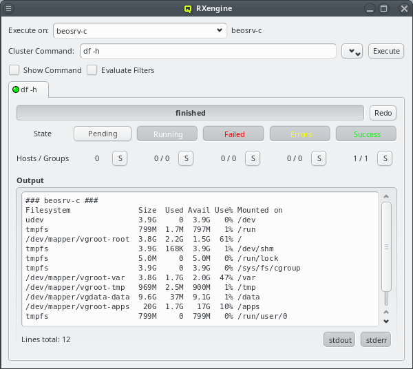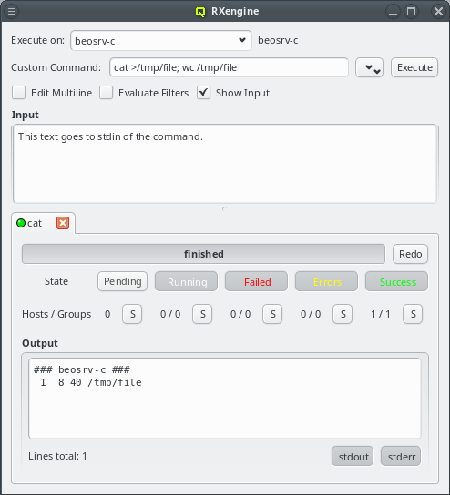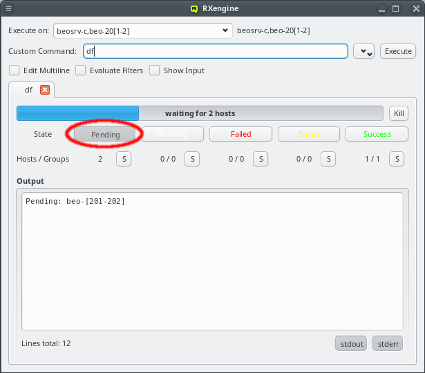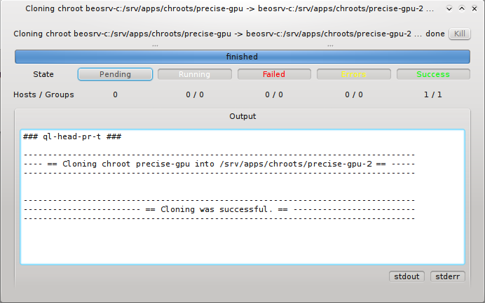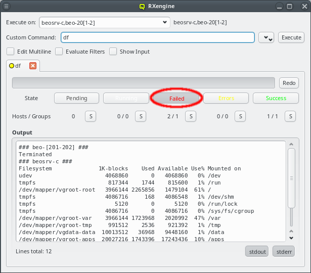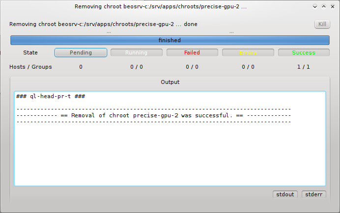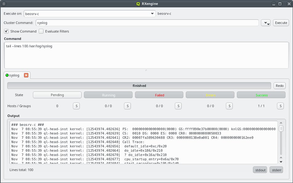 Execute button. In case the action was operating on the nodes slurmd, an RXengine window comes up, in which one can track the success of the remote slurmd operation. To clear the complete list of selected nodes, one can click the Clear button. To remove only a subset of nodes, one can select them in the right list and remove them via the context-menu.