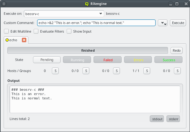0 user@workstation ~ $echo "I'm executed by user admin on the admins workstation"I'm executed by user admin on the admins workstation