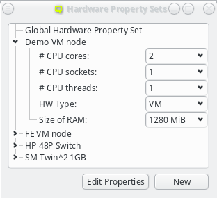 Hardware Properties are used to describe the hardware of a host. Among others, hardware properties like the amount of RAM or number of CPU cores are used to configure the Slurm workload manager, so jobs can be assigned to the desired hosts. Others, like e.g. the HW type, are purely informational and might be used for inventory management.