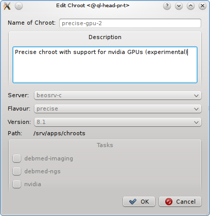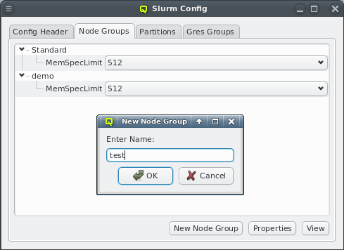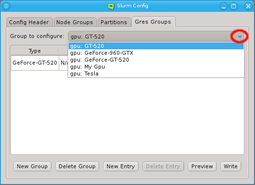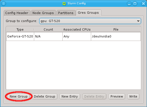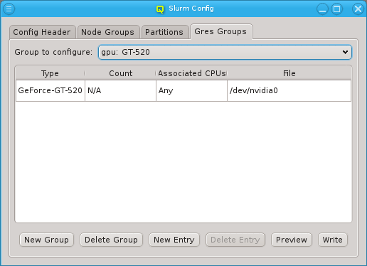 Gres Groups are used to specify the type and number of GPUs of a host. When submitting jobs that require GPUs, this information is then used to determine the nodes that satisfy the job requirements. All the necessary settings for the desired configuration of the nodes may also be done manually and can be changed later through the slurm config dialog from the main window.