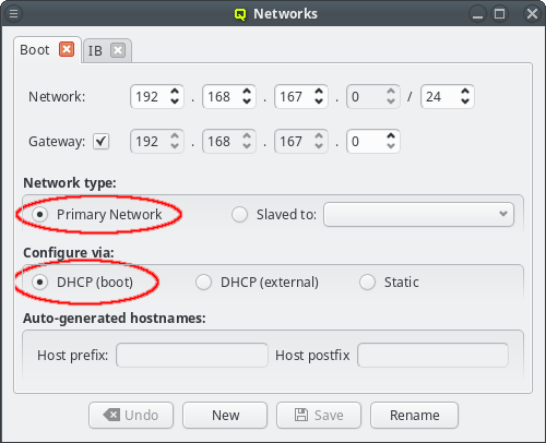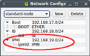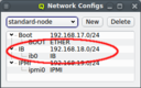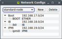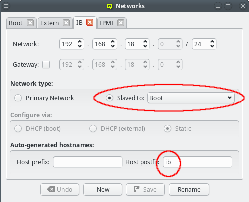 beo-01 will be reachable on the Infiniband network as beo-01-ib. Such pre-/postfixes may be set/changed in the configuration dialog of the network.