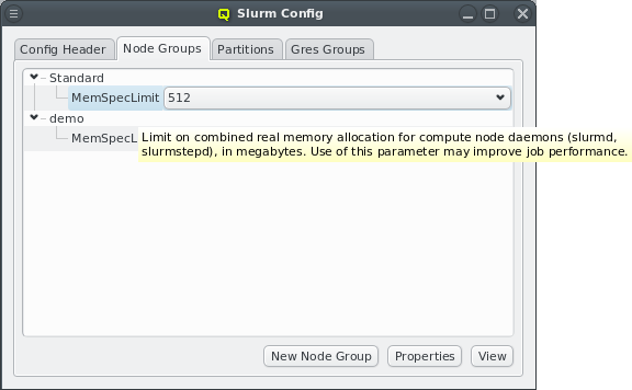 MemSpecLimit property is defined, but other properties like Feature or Weight can be added by using the Slurm Property Editor.