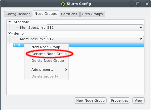 slurm.conf file. An example for this is the Feature property. Properties can also be changed directly using the pull-down menu. If a change will cause a duplicate value, the previous (duplicate) value is automatically removed.