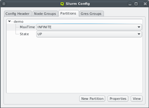 slurm.conf. Changing their name would lead to errors in the generated file. Similarly, some property values can not be deleted and will be shown grayed out.
