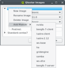 Qlustar Images window opened from . Others govern the right to specific actions or to alter specific properties. For example, the right to configure OpenSM on hosts, enables the user to add, alter or delete the OpenSM Ports and OpenSM Options property of hosts in the Enclosure View.