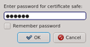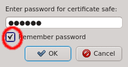 Remember password check-box. Without enabling this, you will have to input the password again, whenever changes to the safe need to be written. If you are starting qluman-qt for the first time and therefore have no certificate safe yet, this dialog is skipped and an empty Connect Cluster dialog opens directly. See Section 2.2.1, “ Adding a new Cluster ” below about how to add a new cluster.