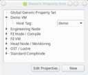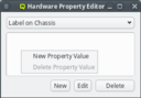 Property Editor. It is reachable from the Generic/Hardware Property Sets windows. A new Generic/Hardware property can be created by clicking the button. Each property has a name and a description. The name must be unique and the button will only be enabled if that is the case. The description is optional and will be shown as a tool-tip when hovering over the property in other windows.