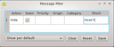 Job Filter Editor dialog it is possible to create custom filters for the Job Management table. After it has been opened, a new filter may be created by clicking New Filter and then insert a name for the filter. After confirming with OK the filter is created and a new window comes up, where properties can be assigned to it. To add properties, right-click for the context-menu and select the property you want to filter with.