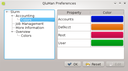 QluMan Preferences dialog, one is able to customize specific parts of the QluMan GUI Look&Feel. The tree on the right shows all the settings available for customization. Each QluMan component may have its specific settings, so the options available there depend on the components installed on a particular cluster.