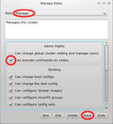 Admin rights covers rights with global impact and root access to nodes, Booting covers all settings that affect how nodes will boot, Services covers the configuration of daemons and Host Config covers the general configuration of hosts.