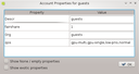 Show Account Properties or Show User Properties depending on what was selected. Two filters are available in this dialog: One for hiding all properties with a value of 0 or empty and one for hiding exotic properties which are not of interest in most cases. By default, both filters are enabled. To disable them, their corresponding entry has to be checked at the bottom of the dialog.