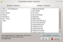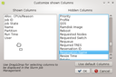 Customize Columns dialog displays all known columns (properties of a job) in two lists. The columns in the left list will be shown in the jobs table, the ones in the right list won't. To show or hide columns just select them and drag them either into the left or right list. Confirm your changes with OK.
