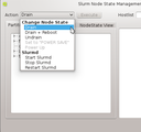 Node State Management dialog lists all hosts that are registered with Slurm. There are three different kind of views showing the existing hosts. The color of the LED in front of the hostname indicates the Slurm state a node is in. When hovering over a particular node, a tool-tip describing the state appears.