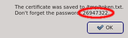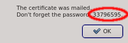 generated one-time token, as well as the other login information required to connect to the server. The certificate is protected by an auto-generated 8 digit pin, so that it can be transferred over unencrypted communication channels like e-mail or chat programs. In such a case, the pin should be sent over a second, different, communication channel, e.g. reading it over the phone.